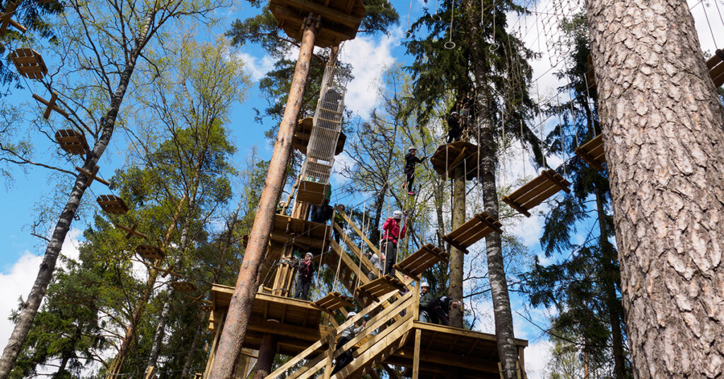Köysiseikkailun pituusraja on vähintään 100 cm, mutta 100-120 cm pituisen lapsen mukana tulee olla aikuinen köysiradoilla.